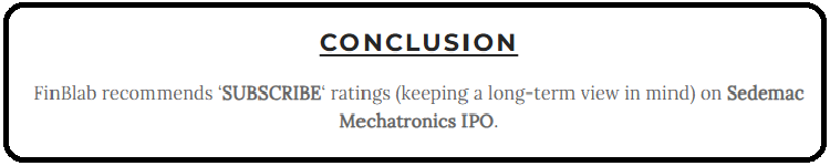 FinBlab recommends ‘SUBSCRIBE‘ ratings (keeping a long-term view in mind) on Sedemac Mechatronics IPO.